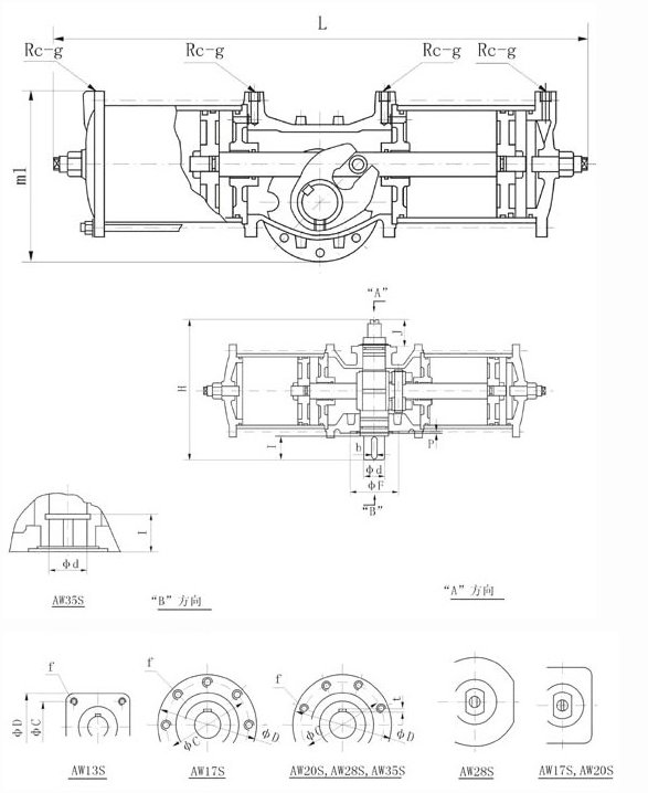 | AW35 Aw40 | 1860 | 545 | 440 | 300 | 350 | 8-M24 | 105 | 100 | 220 | 10 | 28X2 | 6.4 | -- | 1/2" |
