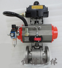 氣動(dòng)固定球閥是雙向閥,流向無限制。中法蘭用螺柱連接,上下閥桿均設(shè)有滑動(dòng)軸承,減少磨擦,使用操作省力、平穩(wěn)。在正常情況下:壓力低時(shí)閥座密封依靠彈簧預(yù)緊力使閥座緊 貼球體達(dá)到密封,壓力高時(shí),在閥座上形成活塞效應(yīng),在上游介質(zhì)壓力作用下,使閥座壓緊球體達(dá)到密封、氣動(dòng)固定球閥,氣動(dòng)球閥,球閥廣泛應(yīng)用于過程控制系統(tǒng) 實(shí)現(xiàn)開或關(guān)。
